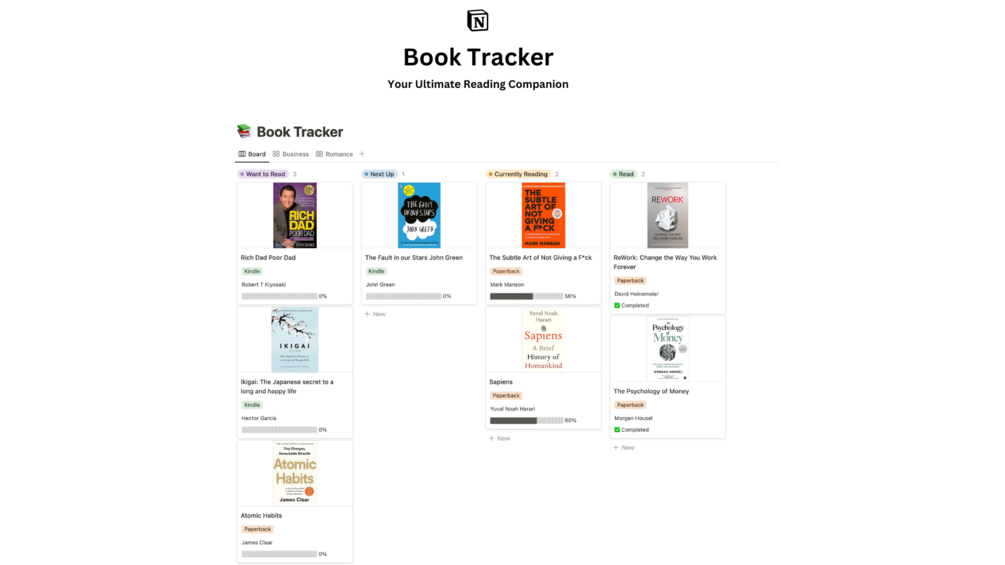Whether you're a bookworm or just looking to improve your knowledge and skills, this book tracking template is a must-have tool.